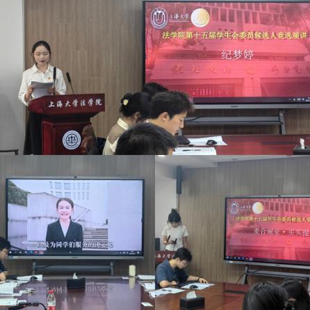 2025年6月21日上午9时,上海大学法学院第十五次学生代表大会在上海大学法学院304会议室顺利举行。法学院党委副书记、副院长于伟、法学院团委副书记王琦以及40余名法学院本科生代表出席了本次学代会。大会由上海大学法学院2022级本科生石镇玮、黄薇洁和胡萱同学主持。