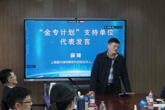 2026年3月14日上午, “金专计划”第四期开班仪式在法学院304室顺利举行。“金专计划”由上海市知识产权局作为指导单位,上海大学法学院、知识产权学院主办,旨在进一步深化理工科与法学的交叉融合,培养更多适应国家知识产权战略需求的复合型高级专利实务人才。来自上海大学卓越工程师学院、微电子学院、中欧工程技术学院等的40余名学员参加了仪式。“金专计划”总顾问、知识产权学院名誉院长陶鑫良,法学院党委副书记、副院长于伟,法学院副院长、知识产权学院院长袁真富,以及来自上海专商所、上海科盛、上海弼兴、上海段和段、上海汇业、上海百一、北京集佳、上海瓴慧等8家头部专利事务所和律师事务所的主任、专家齐聚一堂,共同见证第四期启航。仪式由上海大学法学院青年教师、“金专计划”班主任蔡葵老师主持。