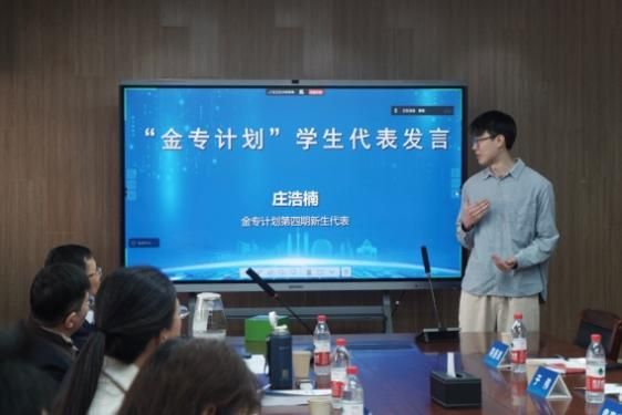 学生代表环节,“金专计划”第一期优秀结业生分享了自己的成长经历,感谢“金专计划”让他打通了技术与法律的壁垒,成为复合型人才。第四期新生代表、微电子学院学生庄浩楠谈到了芯片领域专利壁垒的严峻现实,表达了对学习专利实务的迫切需求。来自企业的学员代表叶朵朵分享了从企业视角学习专利知识的初衷。