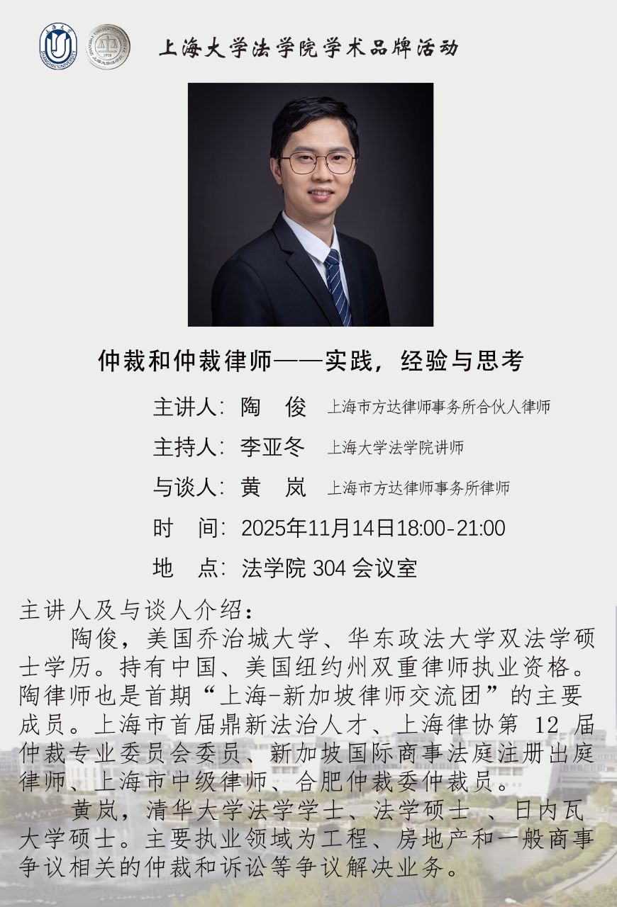 上海大学法学院泮池讲座“从法学院到法律人”顺利举行
